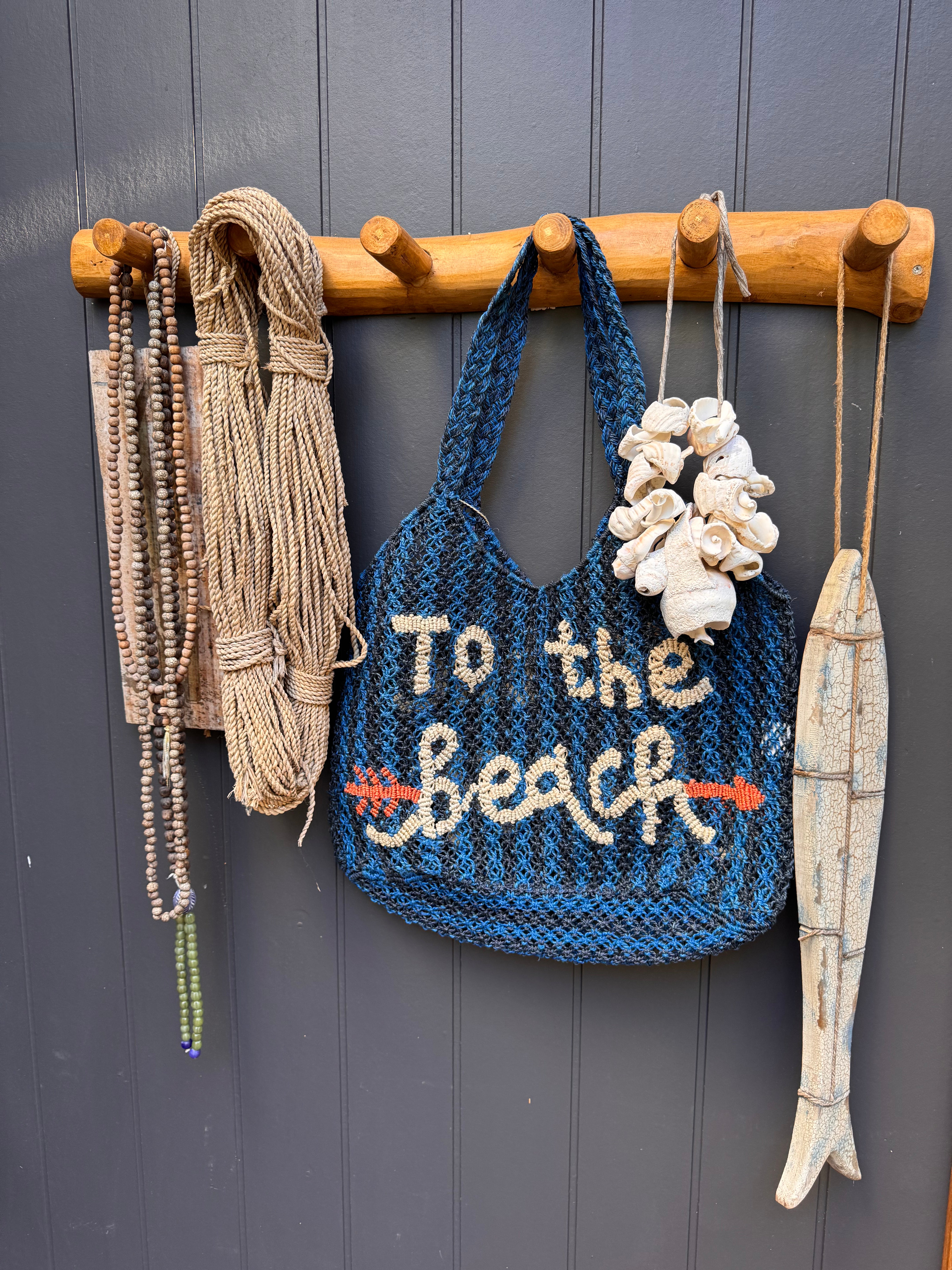 The Jacksons To The Beach Jute Bag / Dark Navy - Cobalt - Natural